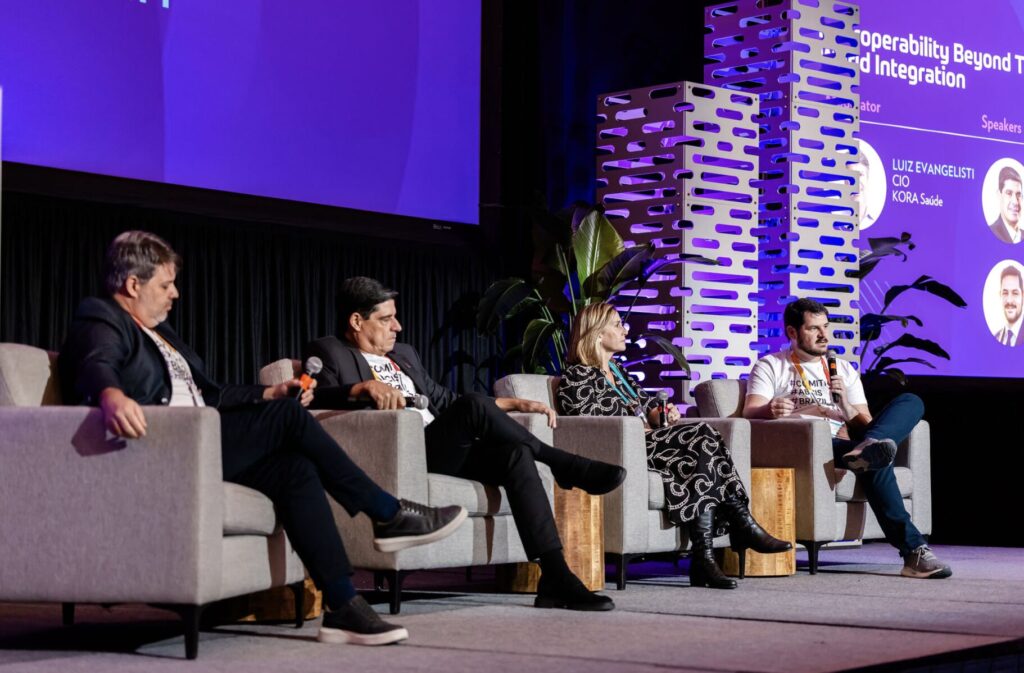 Uno de los paneles estuvo dedicado a la interoperabilidad de datos en salud, con moderación de Luiz Evangelisti, CIO de KORA Saúde.